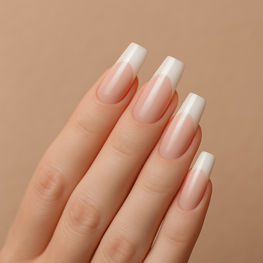 - Francesas acrílicas: elegancia atemporal con punta blanca definida.